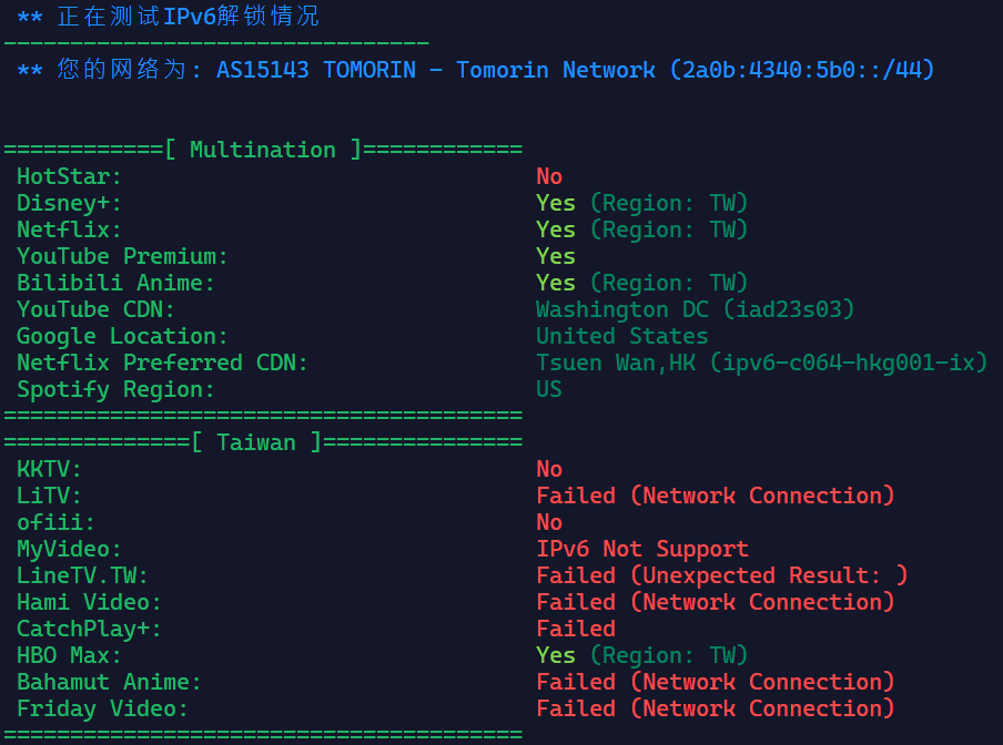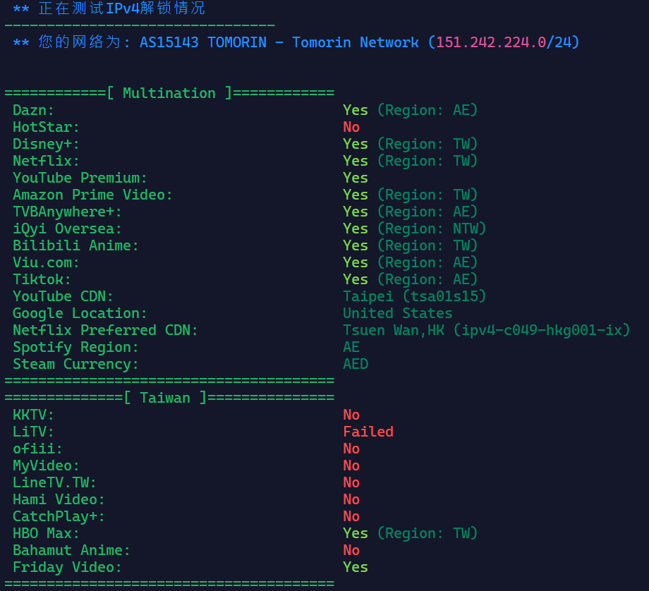 虽然IP是Tomorin AS15143的广播IP,但依然可以很好地解锁流媒体。