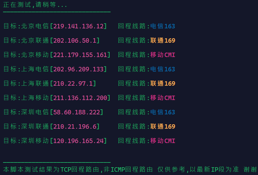 商家描述此鸡为尽力而为的中国大陆优化线路(无SLA),我们来看一下这台机器的IP的回程线路情况: