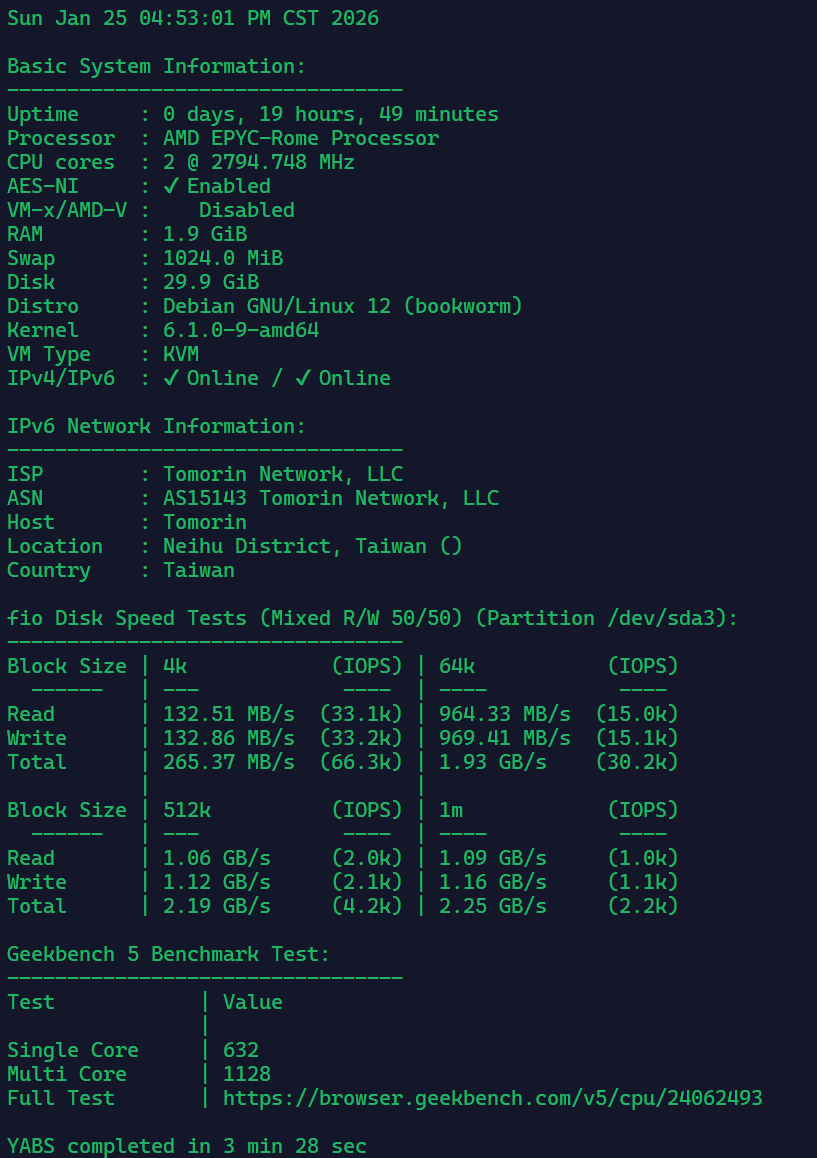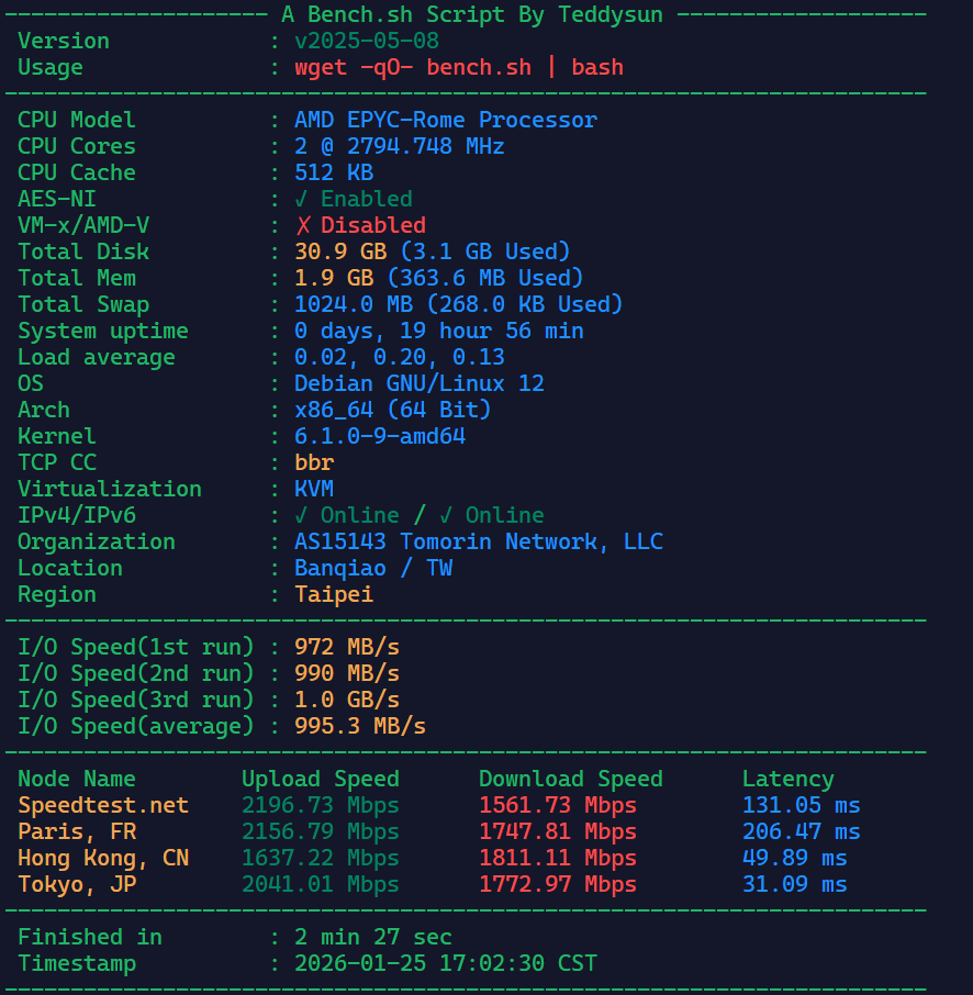 最终评价:性能合格,带宽给的很足,线路可以算是很优质的,虽然IP是广播的,但流媒体解锁也不错。价格适中,评价为好鸡,喜欢的可以上月付试试。