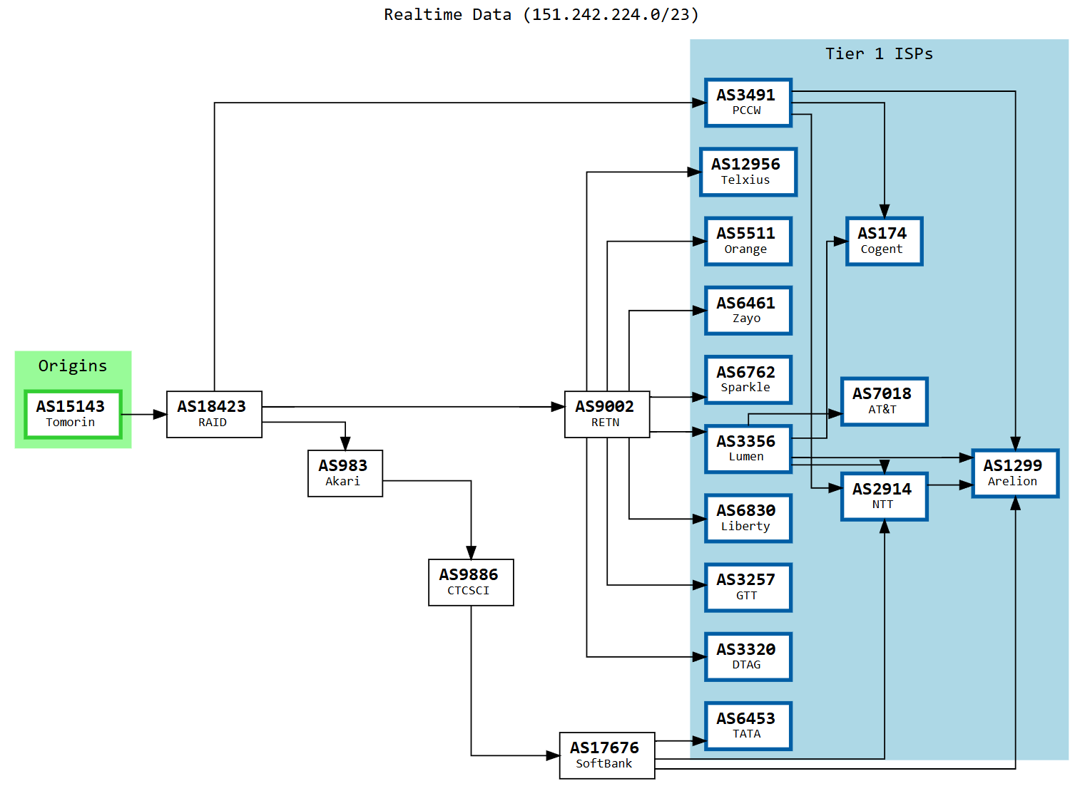 具体的回程延迟路由情况: