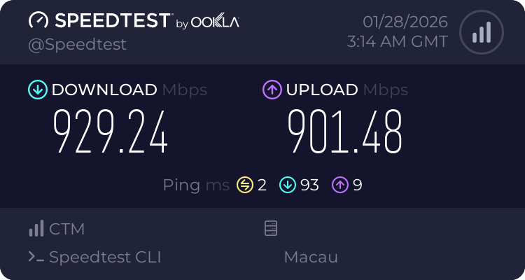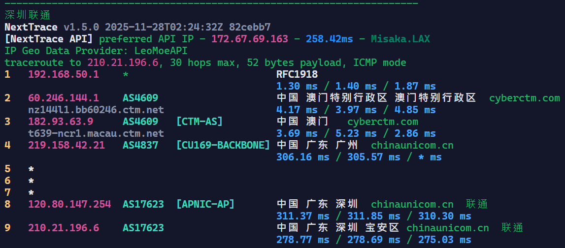 澳门CTM若搭配香港IEPL使用体验极佳,到香港延迟4-7ms。