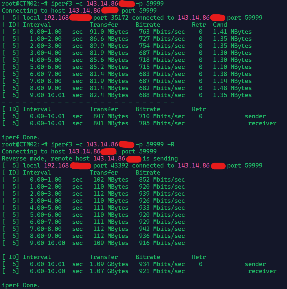 与HaloCloud HK STD双向iperf3测试: